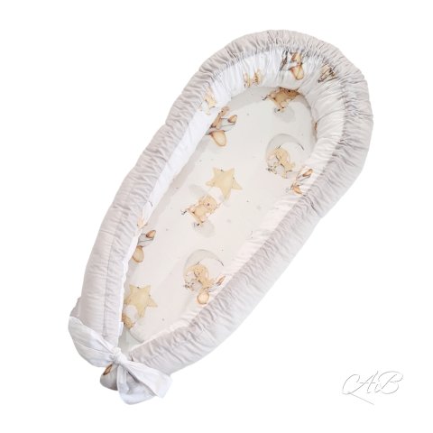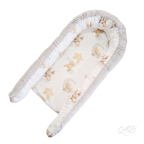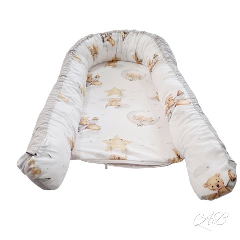 Andy Brandy gnijezdo za bebe G0048 ručno je izađeno je od najfinijih pamučnih tkanina s OEKO-TEX 100 class I certifikatom. Obruč gnijezda punjen je antialergijskim silikoniziranim kuglicama. Gnijezdo olakšava život roditeljima i omogućuje miran i siguran san Vašoj bebi.