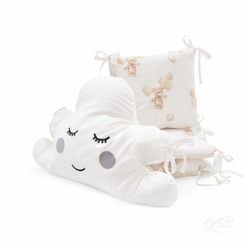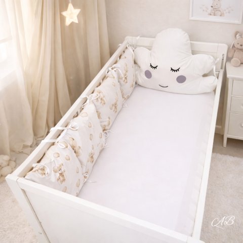 Andy Brandy ogradica oblačko sastoji se od ukrasnog jastuka oblaka na uzglavlju koji će biti dobar i vjeran prijatelj u snu Vašoj bebi i četiri bočna jastučića. Ručno je izađena je od najfinijih pamučnih tkanina s OEKO-TEX 100 class I certifikatom. Punjena je antialergijskim silikoniziranim kuglicama. Svakom krevetiću daje poseban šarm.