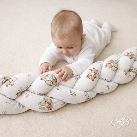 Andy Brandy pletenica ručno je izađena je od najfinijih pamučnih tkanina s OEKO-TEX 100 class I certifikatom. Punjena je antialergijskim silikoniziranim kuglicama. Pletenicu možete koristiti umjesto klasičnih ogradica za krevetić. Svakom krevetiću daju poseban šarm.